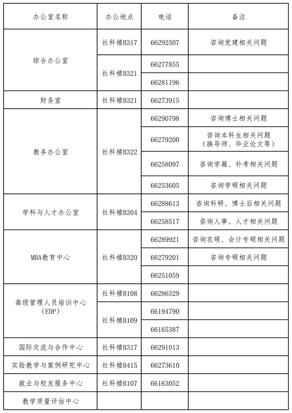 管理部门通讯录
