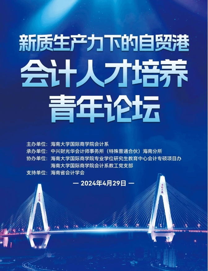 专业学位研究生教育中心会计专硕项目办及会计系教工党支部协办、海南省会计学会支持的新质生产力下的自贸港会计人才培养青年论坛于2024年4月29日下午在海口国瑞大厦中兴财光华会计师事务所海南分所培训室召开。