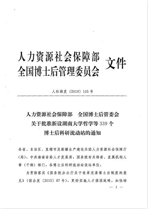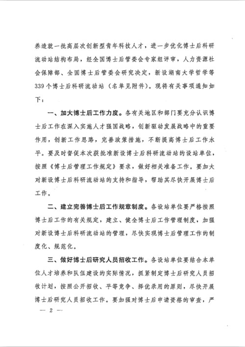 日前,人力资源和社会保障部、全国博士后管理委员会日前发布了《关于批准新设湖南大学哲学等339个博士后科研流动站的通知》(人社部发〔2019〕105号),批准新设黄色网站