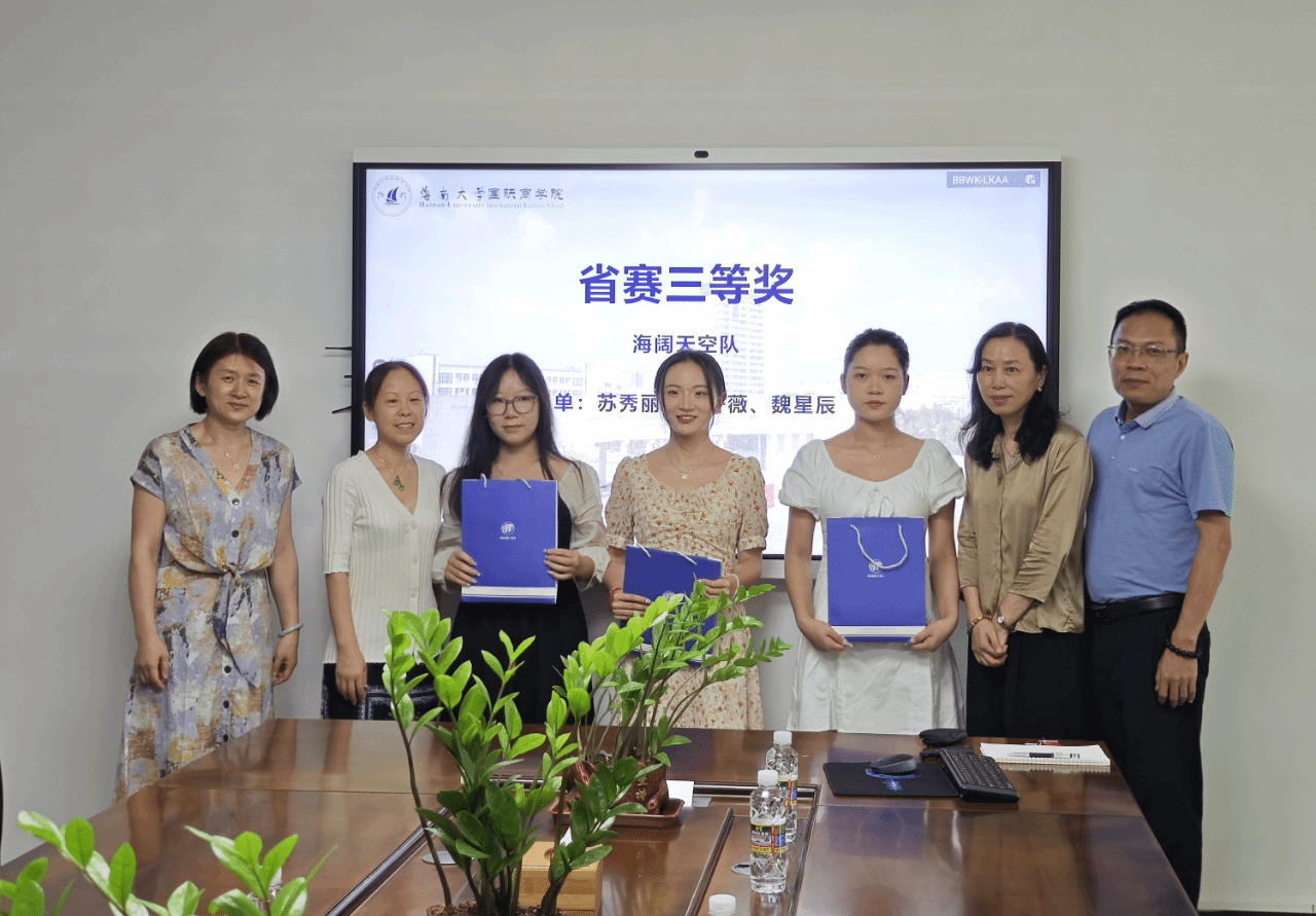 表现卓越,共有五支队伍荣获佳绩。分别为谢妍老师指导的国赛二等奖“高级会计师分队”(徐浩扬、洪荣旖、贾惠茹)、沈琳老师指导的国赛三等奖“跃起动力队”(朱雨萌、张瑞雪、徐铠)、省赛二等奖“天工开物队”(徐钰涵、沈婉蓉、李雨函)、省赛二等奖“遥遥领先队”(吴佳幸、袁文春、陈垚希)、省赛三等奖“海阔天空队”(苏秀丽、梁轩薇、魏星辰)。