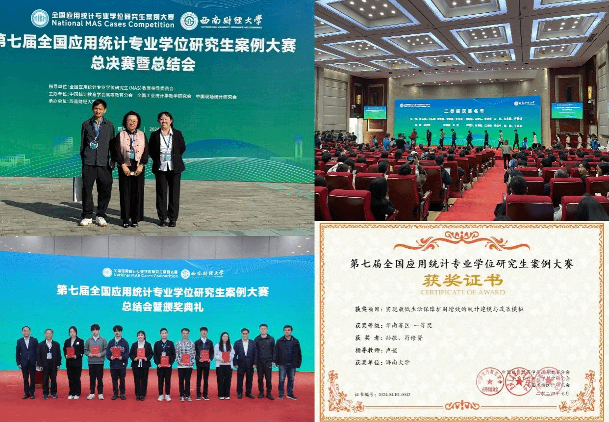 卢媛副教授指导、2023级应用经济学硕士研究生孙敏与2023级工商管理博士研究生符修贤共同组成的参赛团队,凭借案例《实现最低生活保障扩围增效的统计建模与政策模拟》,在全国众多参赛作品中脱颖而出,荣获全国二等奖,并作为全国32个优秀案例之一成功入选“全国应用统计专业学位教育教学案例库”。