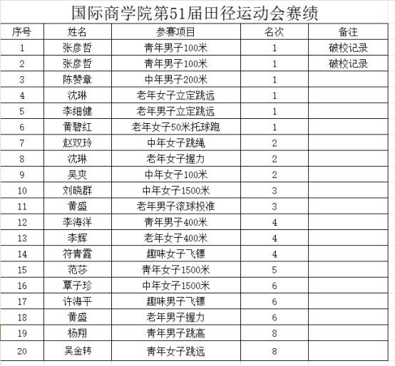 第51届田径运动会(海甸校区)教工组团体第四名的好成绩,并荣获“体育道德风尚奖”。