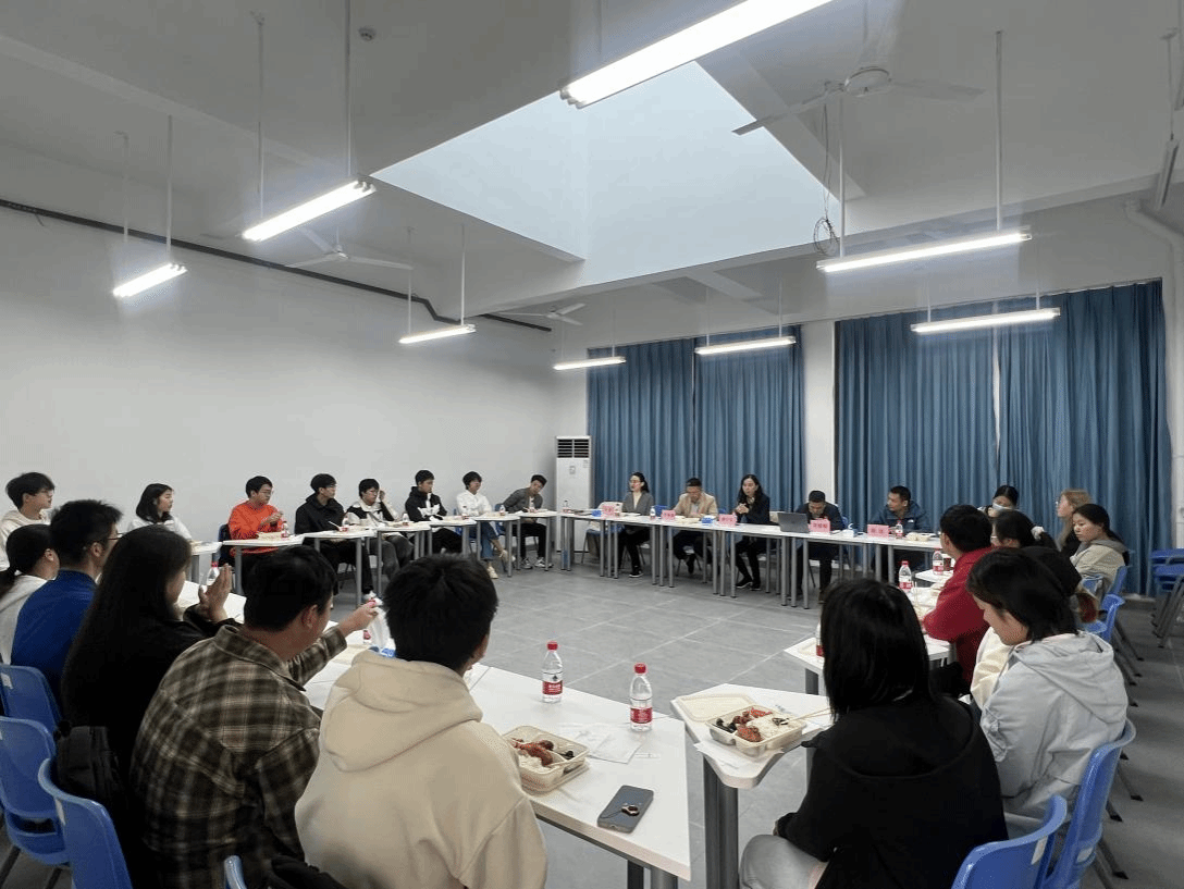 2024级本科生代表座谈会。学院领导班子代表出席会议,2024级本科生代表参加座谈,围绕学业规划、校区生活、教学管理等问题展开深入探讨。座谈会由学院党委副书记、纪委书记(兼)王静主持。