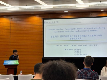 海深洋副教授汇报了题为“The right is the best: Exploring the impacts of benevolent leadership expected and received on employee service behaviors”的研究论文。