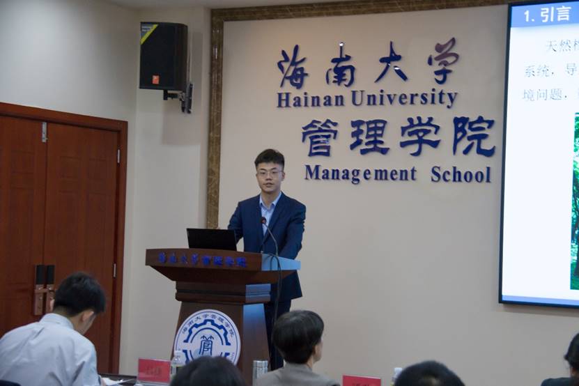 会上,五位作者进行了论文汇报。杨琦报告了“抑制或促进?外出务工对农村人情消费的影响研究”,甘雨报告了“意识、知识如何影响城镇居民天然橡胶园生态治理参与意愿”,杨倩报告了“学习行为、农药知识偏见与蕉农的施药频率”,黄雅雯报告了“信任、社会资本与农村居民幸福感——基于CGSS的微观经验数据”,丁胜红报告了“精准扶贫类型、农民财产性收入不确定性与贫困农户家庭基本需求特征——以某贫困县精准扶贫政策为视角的理论与实证分析”。