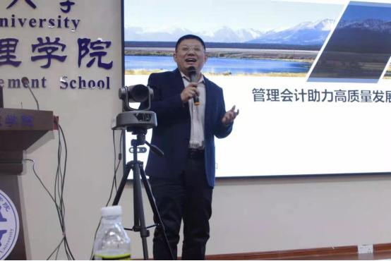 研讨会由财政部会计名家伍中信教授主持。会上四位发言老师为会计学术交流贡献了一场精彩的思维碰撞。来自西南财经大学的蔡春教授就“审计方式方法创新的内在逻辑与相关问题思考”角度发表演讲。来自中南财经大学的张敦力教授对“科技创新中的无人财务与人人财务”进行发言。来自暨南大学的窦欢副教授为“中外会计交流助力自由贸易港高质量发展”发表见解。来自北京工商大学的张伟华教授从“管理会计助力高质量发展:实践与思考”角度发言。