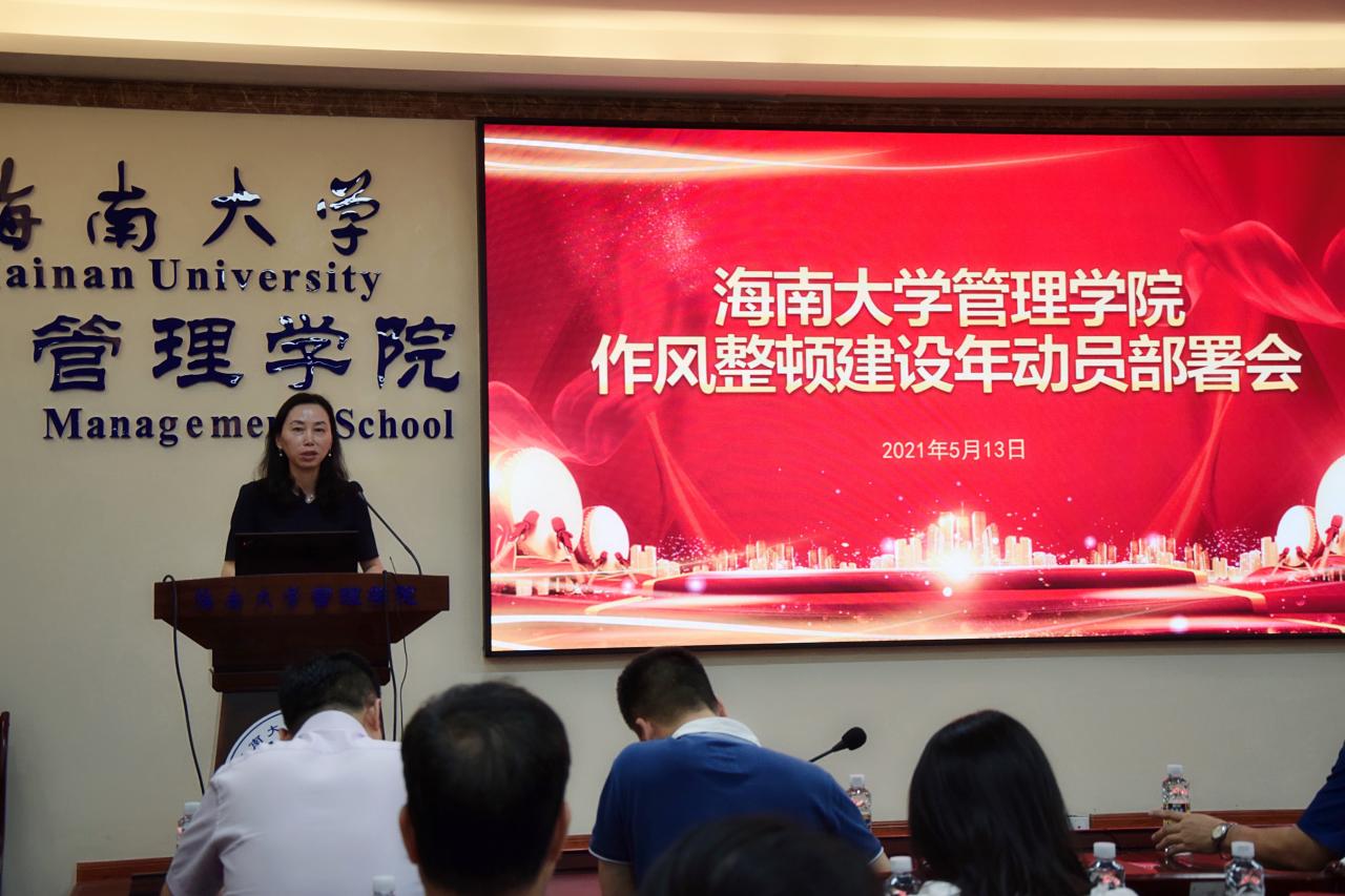 唐宁玉院长在会上指出,要深入贯彻落实全省及学校作风整顿建设年动员部署会的会议精神和会议要求,对作风突出问题开展自查自纠,立整立改。同时要求学院教职工主动提升执行力,增强责任意识,深化服务精神,切实推动各项工作任务落到实处,主动创新,敢于担当,共同将学院建设成为区域内一流商学院。