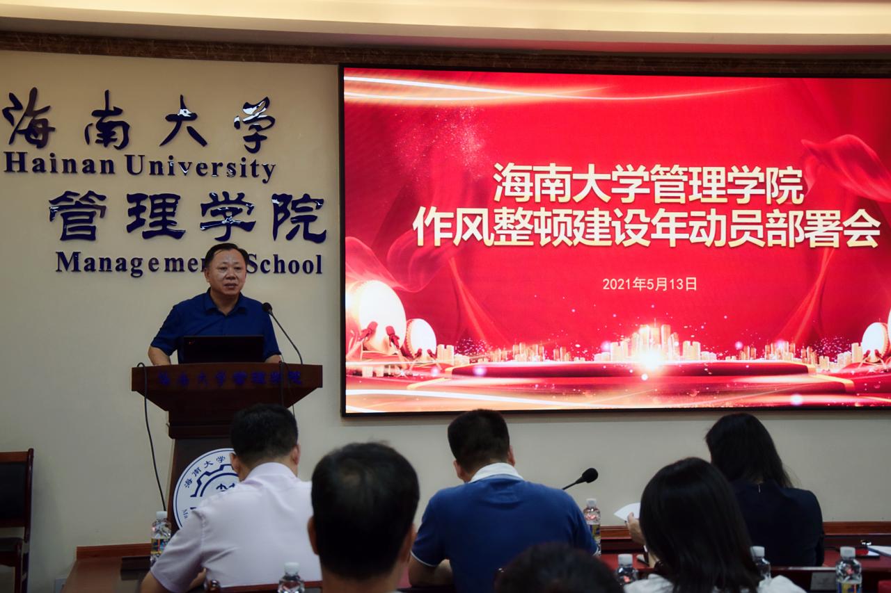 管理学院在社科楼B112会议室召开作风整顿建设年动员部署会。会议由党委书记邢谷川主持,全体院领导及教职工参加。
