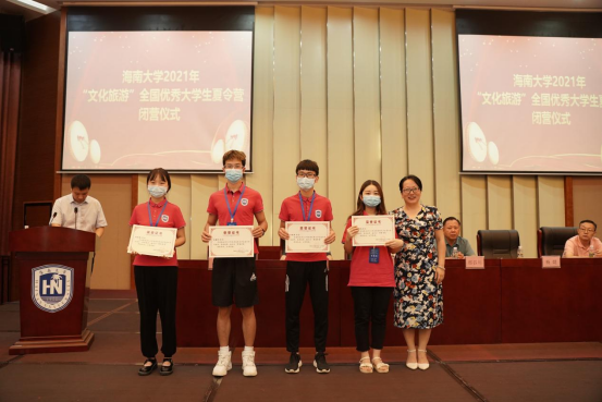 旅游学院韩力光书记、何彪副院长为旅游学院优秀营员颁奖