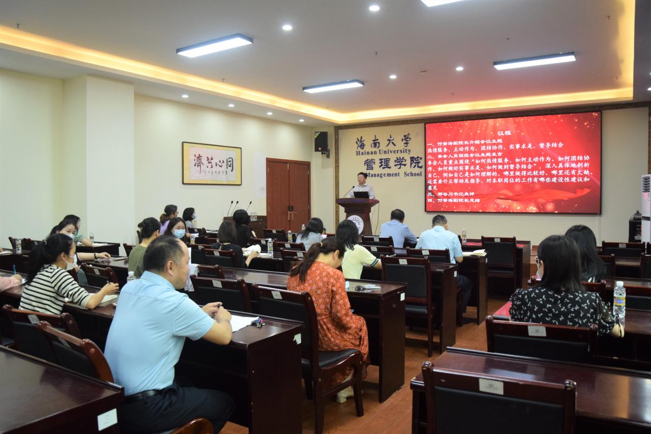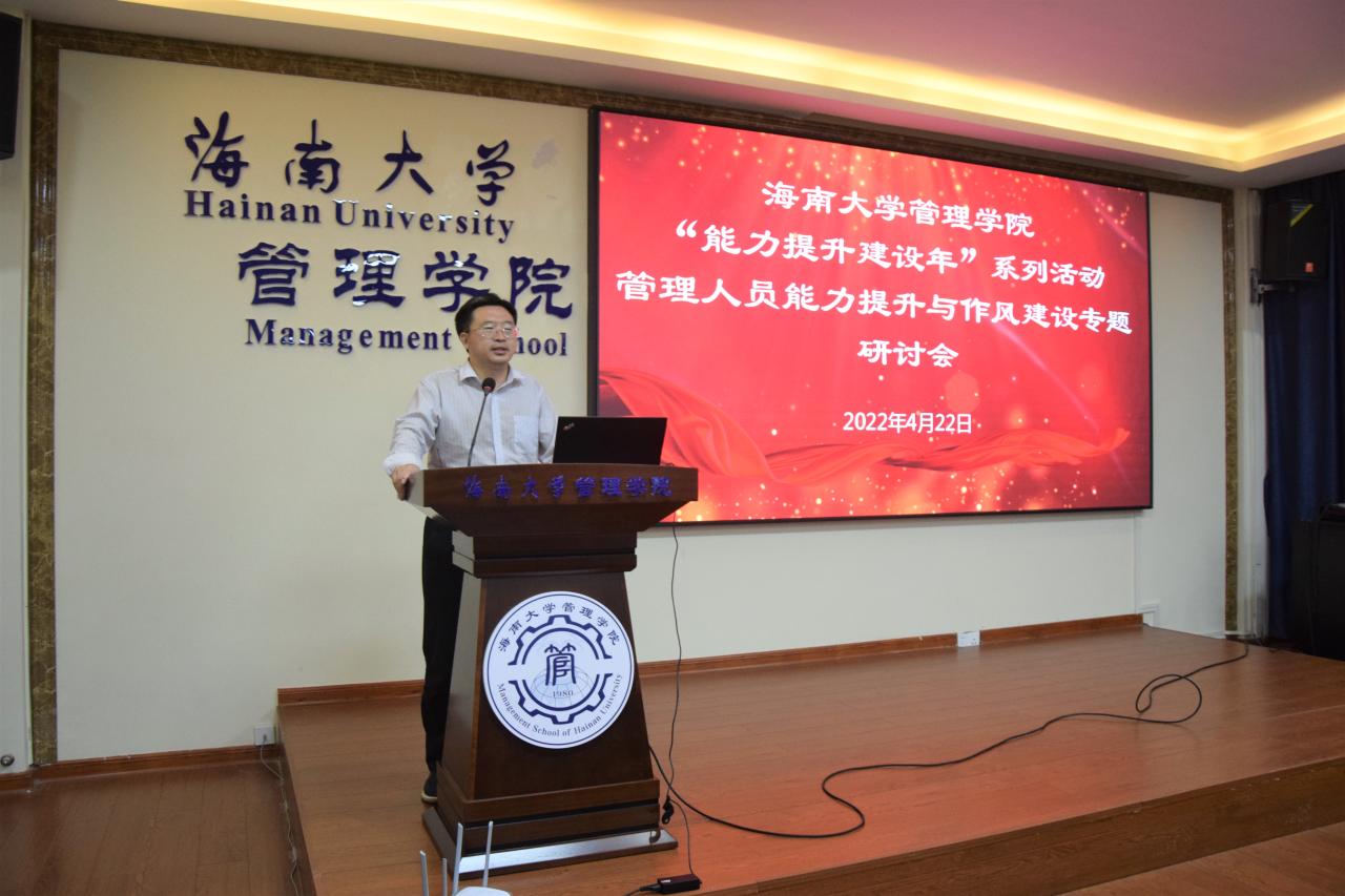 2022年4月22日下午,管理学院在社科楼B112学术报告厅召开“能力提升建设年”系列活动之管理人员能力提升与作风建设专题研讨会。邢谷川书记、付景涛副院长及全体综合管理人员、各系主任出席会议。