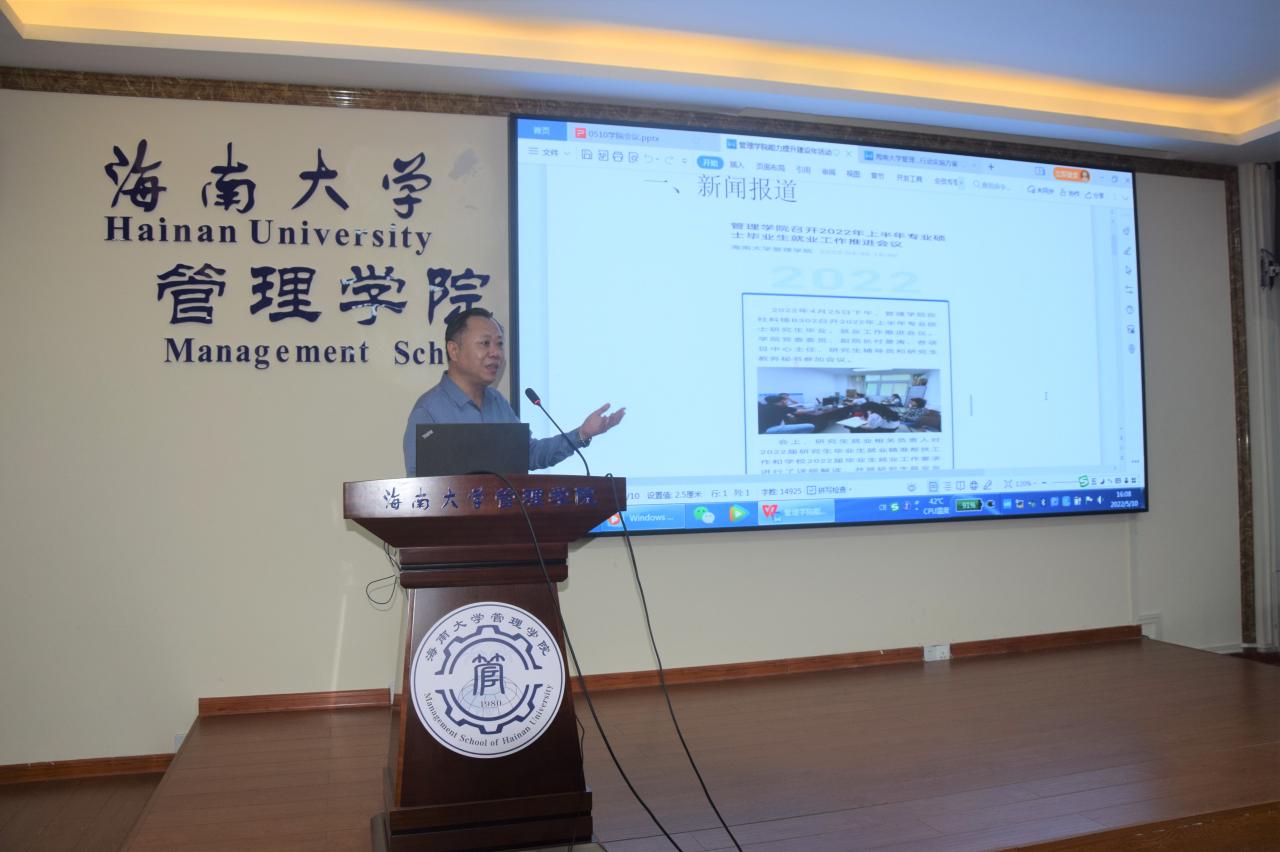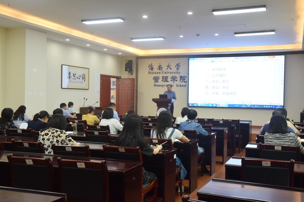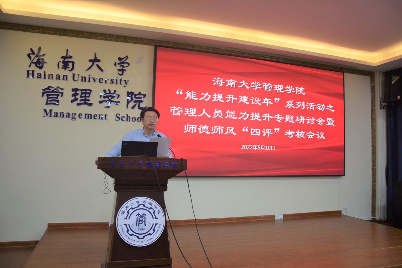 管理学院在社科楼B112学术报告厅举办“能力提升建设年”系列活动之管理人员能力提升专题研讨会暨师德师风“四评”考核会议。管理学院党委书记邢谷川,党委委员、副院长付景涛及全体综合管理人员出席会议。本次会议由学院党委委员、综合办公室主任刘扬雄主持。