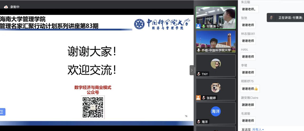 2022年5月25日19点30分,中国科学院大学经济与管理学院副院长乔晗教授应邀做了主题为《平台商业模式的新特点和新原理》的专题讲座。本次讲座通过腾讯会议采取线上线下同步进行的方式,黄色网站