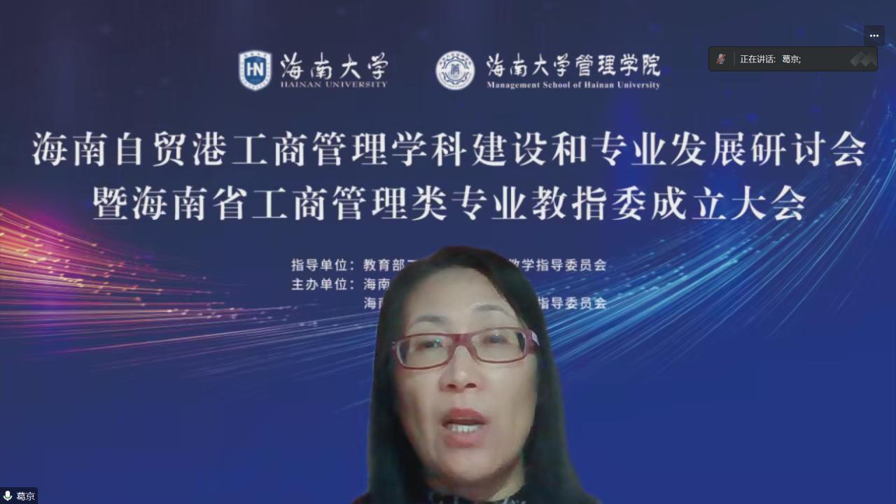 管理学院院长唐宁玉教授主持,她介绍了参会的各位专家和各高校代表。会议主题报告围绕海南自贸港工商管理学科建设与专业发展。