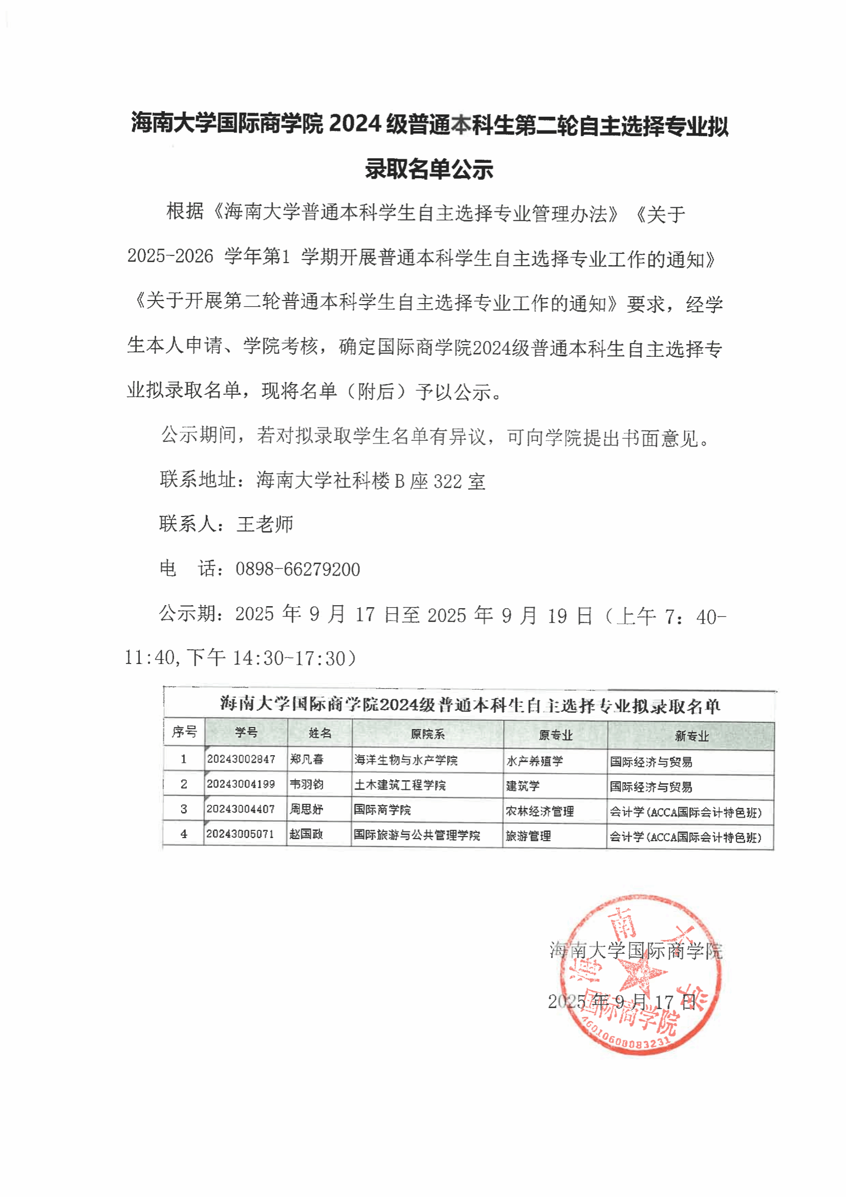 黄色网站 2024级普通本科生第二轮自主选择专业拟录取名单公示