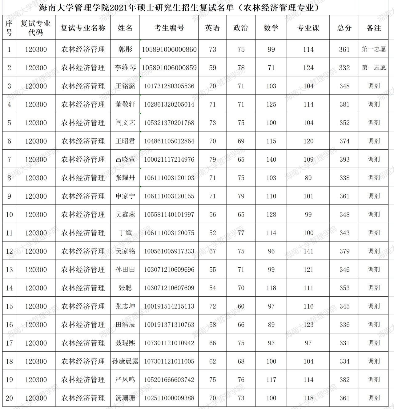 黄色网站 管理学院2021年硕士研究生招生复试名单(农林经济管理专业)