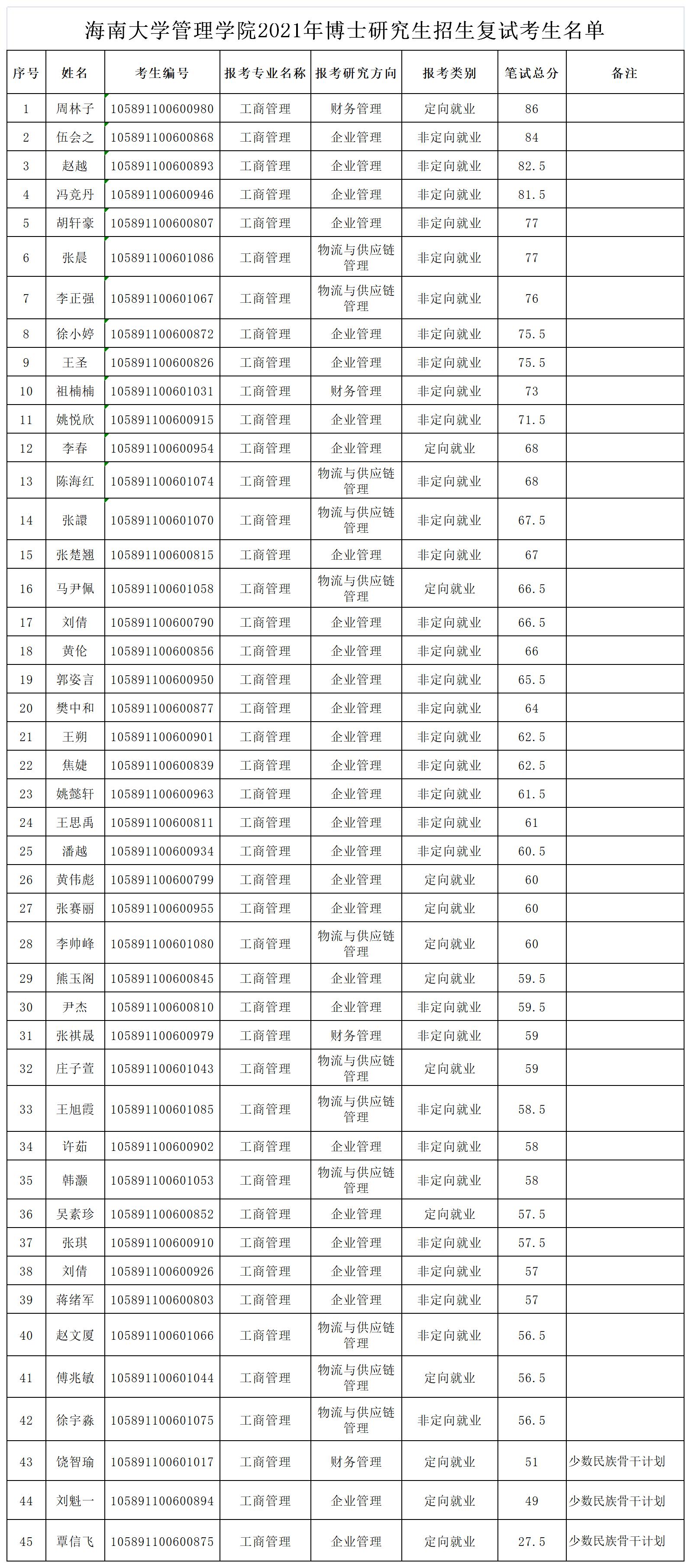 黄色网站 管理学院2021年博士研究生招生复试考生名单