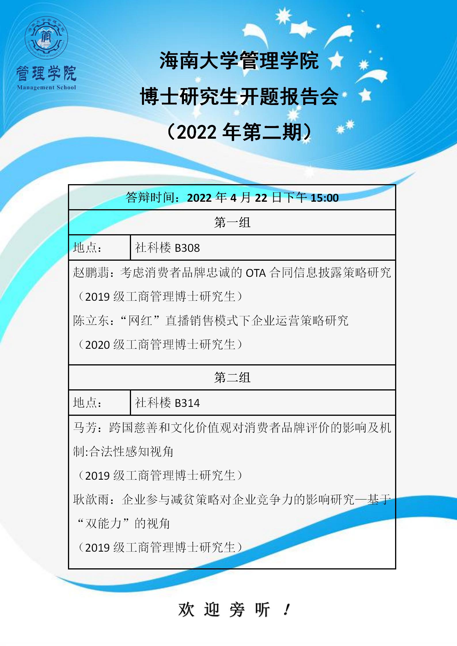 黄色网站 管理学院博士研究生开题报告会(2022年第二期)