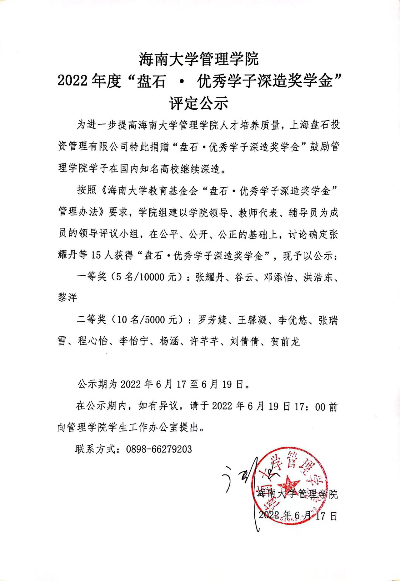 黄色网站 管理学院2022年度“盘石·优秀学子深造奖学金”评定公示