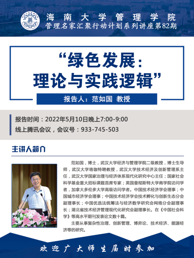 管理学院管理名家汇聚行动计划系列讲座第82期顺利举办(线上视频会议形式)。本次讲座由武汉大学二级教授、武汉大学珞珈特聘教授、经济与管理学院博士生导师范如国教授主讲,黄色网站