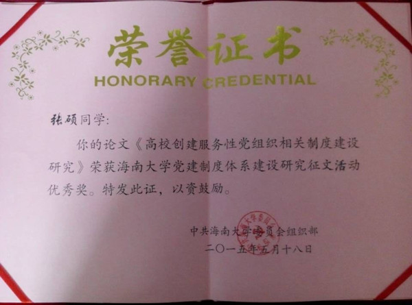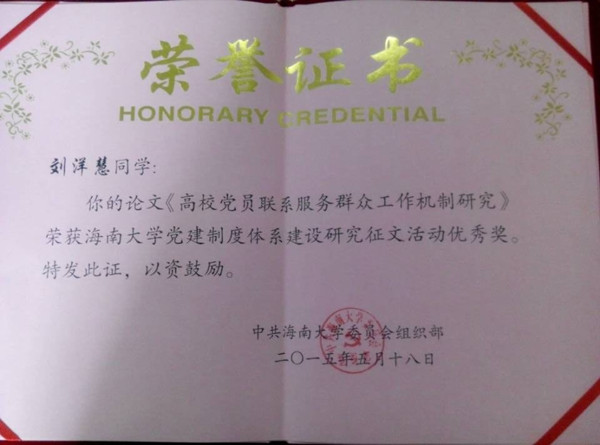 刘洋慧同学撰写的《高校党员联系服务群众工作机制研究》论文和张硕同学撰写的《高校创建服务性党组织相关制度建设研究》论文荣获此次征文比赛优秀奖。 此次评选活动也是学校对黄色网站