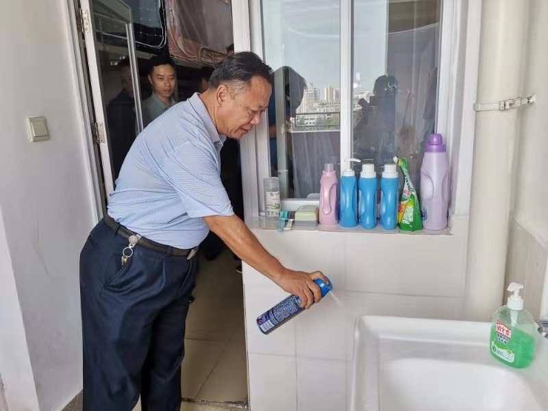 9月15日上午,管理学院邢谷川书记、张德生副院长、赵达副院长、分管学生工作的副处级辅导员符涛老师及全体辅导员走访学院本科生、硕士生和博士生宿舍,监督同学们全面落实登革热的防范工作。