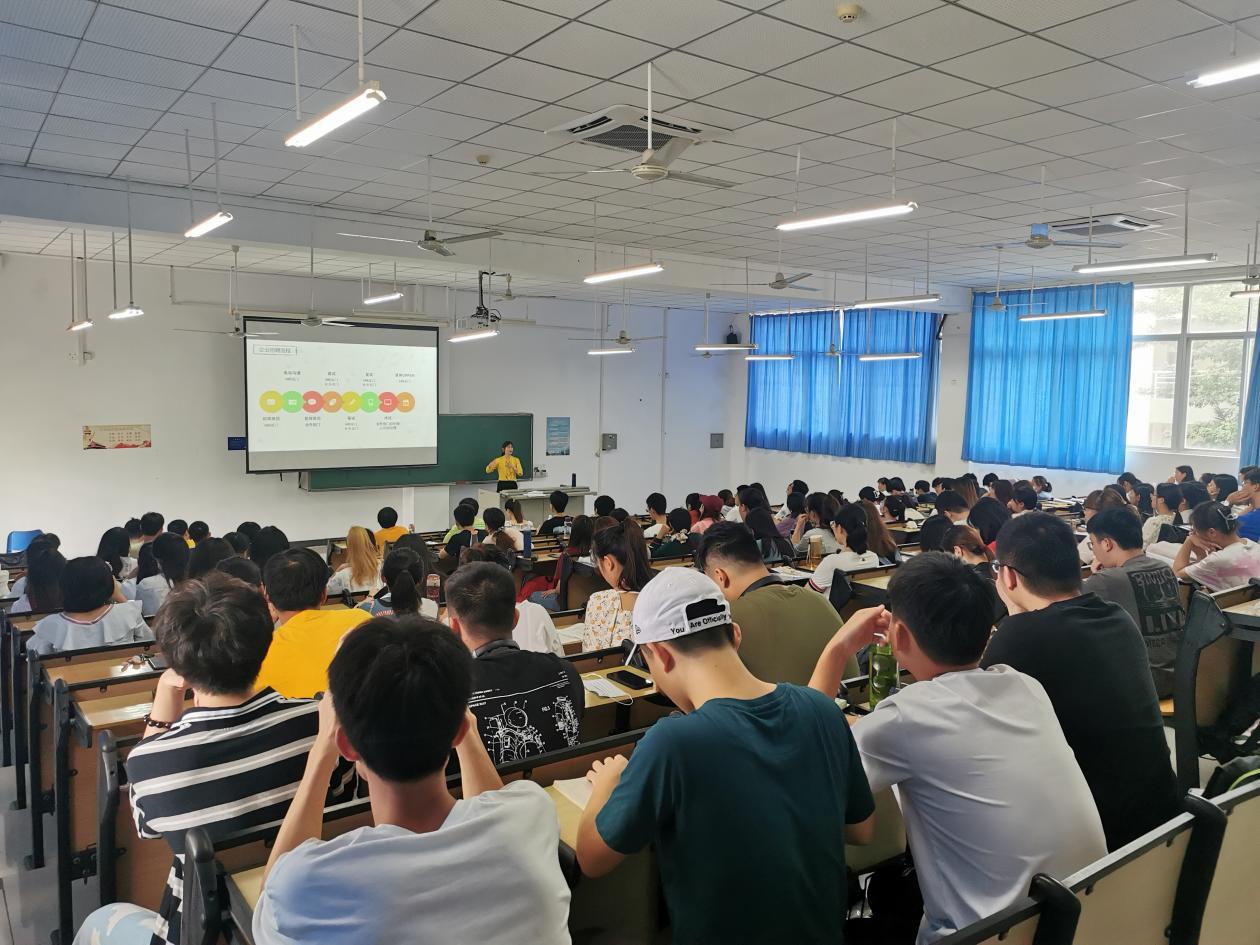 MBA优秀校友、公司治理英才班(第一期)学员、海南京楚投资集团有限公司人力资源总监、事业发展部总监袁茵女士在5-213为2018级应届毕业生作求职简历制作与面试技巧讲座报告。会议由学工办李春老师主持。