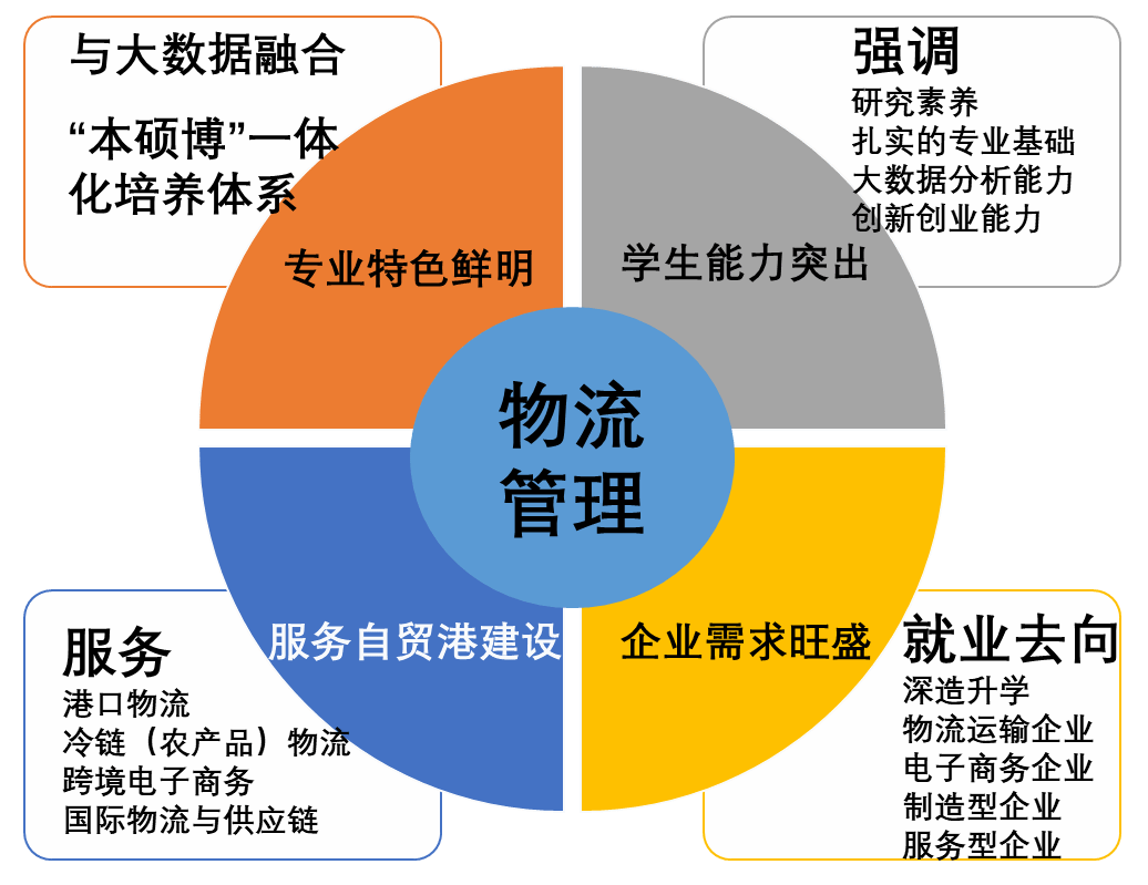 1.立足于海南“自贸港”建设和发展需要,服务于“一带一路”建设。本专业贯彻厚基础、宽口径、强能力、国际化培养目标,秉承“物流与工程融合,管理与技术并重”的学科特色,以物流为基点,着重培养学生在港口物流、国际物流与全球供应链建模、大数据分析方面的核心能力,融入现代服务业、高新产业创新实践。