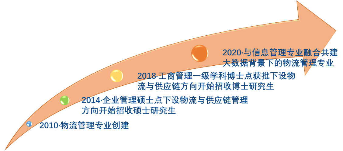 物流管理专业于2010年设立,同年开始招收本科生,是国家级一流本科专业建设点(2021年获批)。本专业在学科上依托于2018年获批的“管理科学与工程”专业一级学科硕士点,以及同年获批的“工商管理”专业一级学科博士点(下设“物流与供应链管理”方向)。