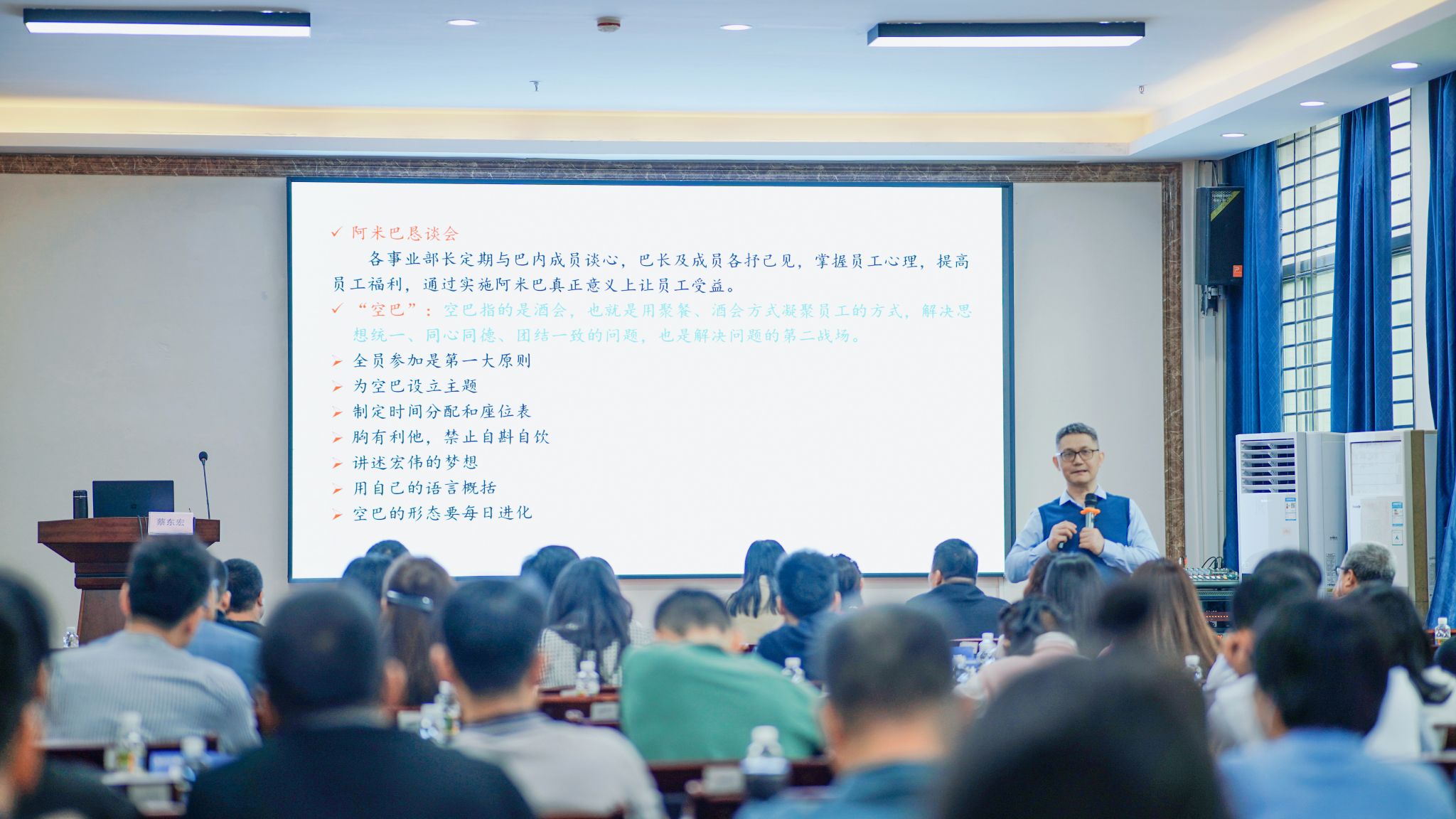 在讲授《阿米巴经营》课程过程中,蔡东宏教授根据自身多年来在学界和业界的实战经营,结合相关企业实例,重点阐述了“把企业做成平台,企业才能做大”、“把平台做成阿米巴,企业才能做强”、“把阿米巴做成合伙制,企业才能长久”。