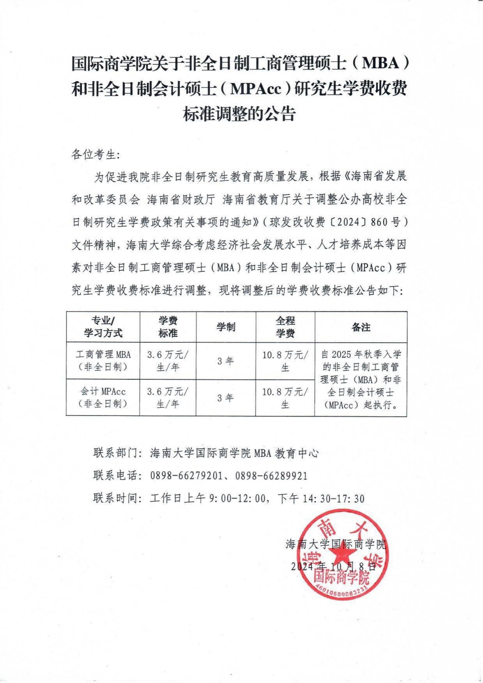 黄色网站 关于非全日制工商管理硕士(MBA)和非全日制会计硕士(MPAcc)研究生学费收费标准调整的公告