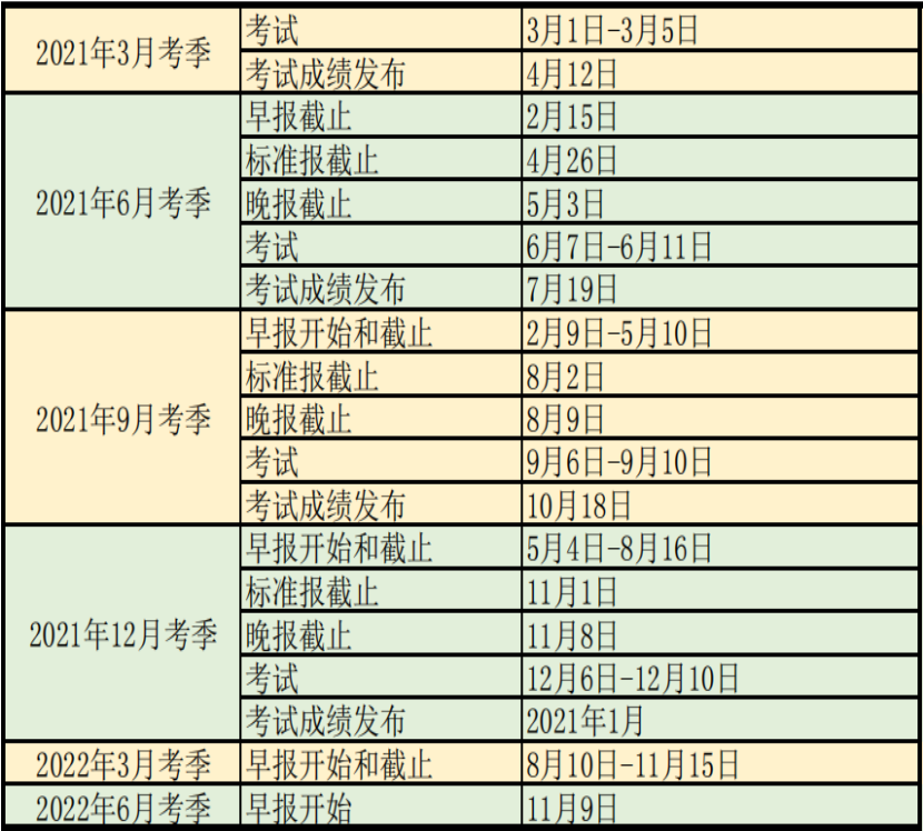 以下为2021年ACCA各考试季度的考试(PM-AAA)相关安排(仅供参考,最终考试时间以准考证上的信息为准)