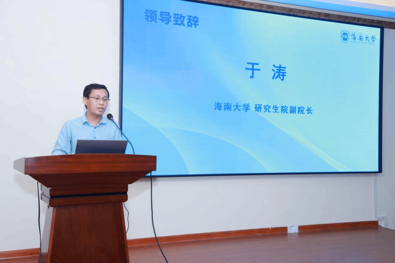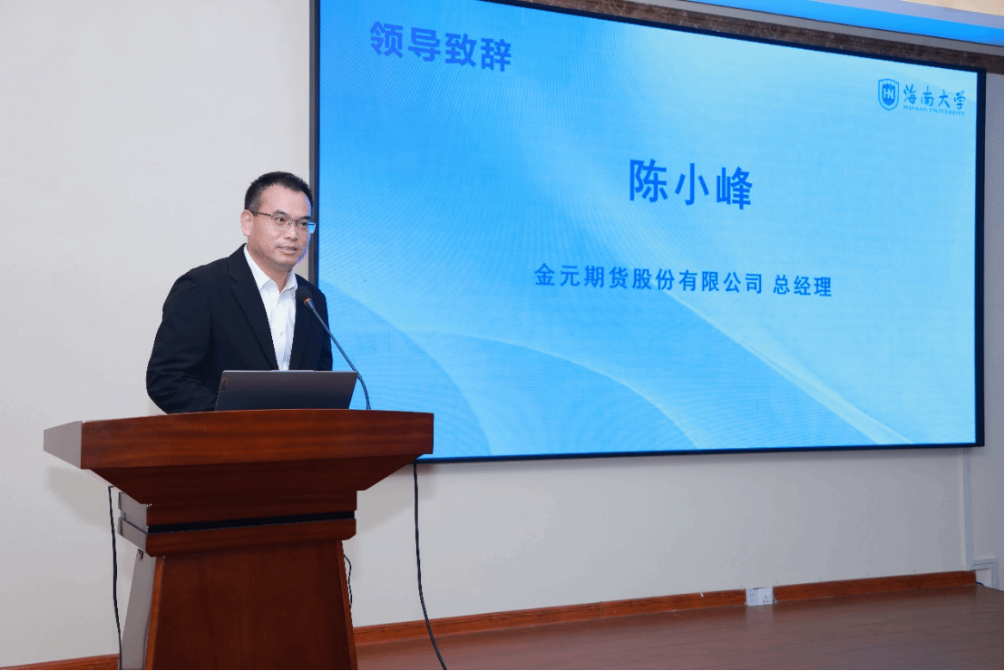 研究生院副院长于涛致辞中对海南自由贸易港期货人才培养基地2023年度项目的顺利完成表示热烈祝贺,对企业与高校双向赋能,多元主体协同共商共建人才基地的立体培养模式给予充分的肯定,也对期货人才培养基地2024年度项目启动表示热烈的祝贺。