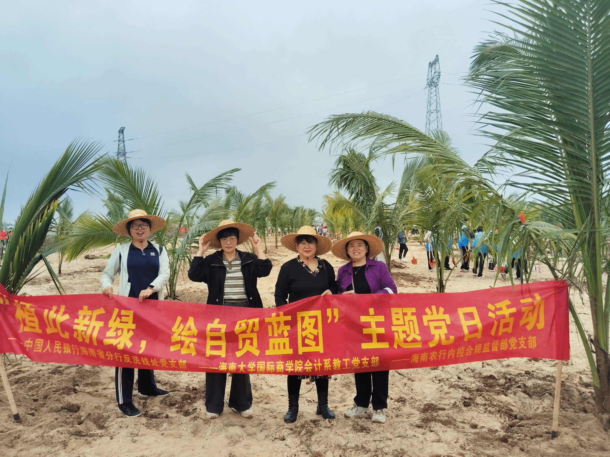 会计系教工党支部与中国人民银行海南省分行反洗钱处党支部、海南农行内控合规监督部党支部以“植此新绿 绘自贸蓝图”为主题,联合开展了一场意义深远的主题党日活动。此次活动不仅践行了绿色发展理念,也为海南自贸港建设注入了新的动力。相信在党建引领下,海南的绿色发展之路将越走越宽广,自贸港的宏伟蓝图也将早日变为现实。